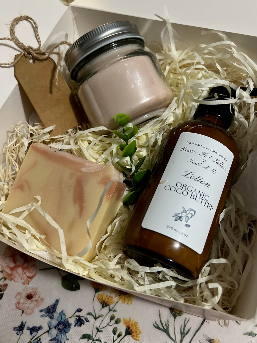 Discover the perfect way to share the charm of handcrafted goodness with our Gift Set Collection. Thoughtfully curated and brimming with seasonal and staple favorites, these gift sets are designed to delight everyone on your list. Whether it's the crisp scents of autumn, the cozy warmth of winter, or timeless classics you’ll love year-round, each basket offers a blend of artisanal soaps, luxurious skincare essentials, and handcrafted touches that celebrate the beauty of simple living.