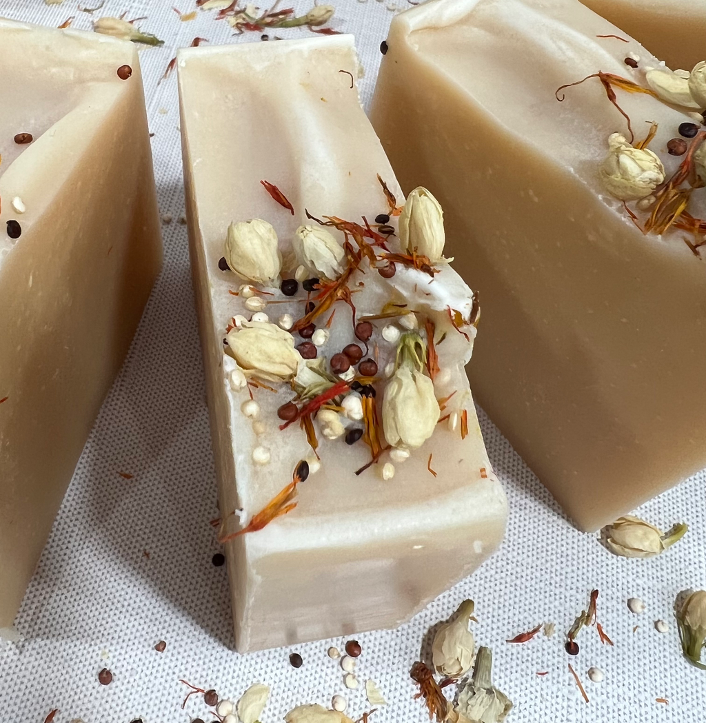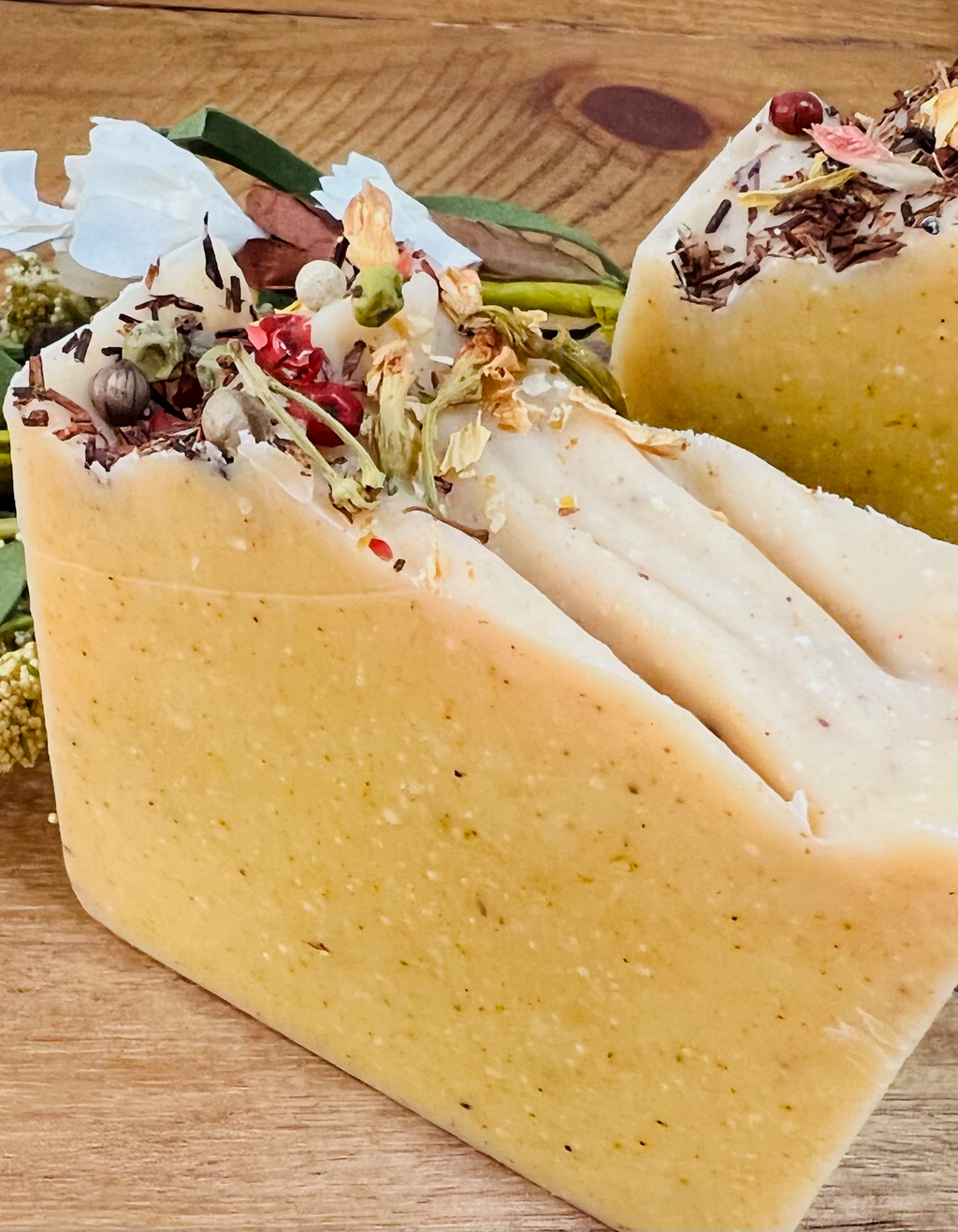 Our soaps are a perfect blend of tradition and care, enriched with natural oils, butters, and botanicals to gently cleanse and nourish your skin. Each bar carries the essence of simpler times, infused with the calming scents of nature like lavender fields, fresh honey, and crisp mountain air.